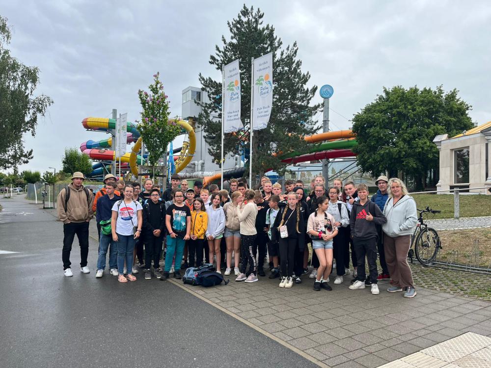 Denn Heutigen Tag starteten wir gegen 8:00 Uhr mit einem Leckeren Frühstück. Es wurden alle Dienste ausgeführt und wir trafen uns um 10:30 Uhr im Aufenthalts Zelt, da unsere Mädels noch die passenden Frisuren brauchten machten wir uns erst gegen 10:50 auf den Weg zum Palmbeach (Rutsch und Schwimmbad). Kurz vor 12:00 erreichten wir das Ziel und machten uns Schwimm Bereit. Manche Betreuer erfreuten sich über die Wasser bar, während andere Betreuer Die Rutschen testeten. Wir Kinder rutschen bis zum Umfallen und Verlierten manchmal etwas die Zeit aus den Augen, genauso wie manche Kinder Leider sich Verletzten. Gegen 17:30 sollten wir fertig geduscht und umgezogen sein, leider Funktionierten die Automaten zum Bezahlen der Verpflegung nicht so wie es sein sollte, darum Verspäteten wir uns um ein paar Minuten. Auf der Rückfahrt Verlor Yannick B. einen Scheibenwischer, so dass wir anhalten mussten. Um 18:45 Uhr Erreichten wir Endlich, denn Zeltplatz und 20 Minuten Später gab es dann Schon Essen, Auf dem Speiseplan stand heute Gulasch mit Knödeln und Salat. Nach dem alle Dienste ordentlich Abgearbeitet wurden, Machten wir unseren Zweiten Kinoabend, wir Schauten Baywatch und amüsierten uns. Nach dem Film bereiteten wir uns für die Beten vor um gut in den Neuen Tag zu Starten.